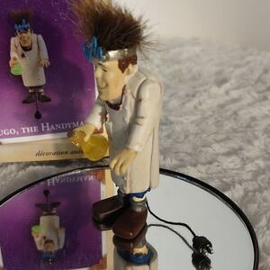 This 2004 Hallmark Keepsake "Hugo, The Handyman" from Mansion on Ravenwood Lane Halloween Ornament measures approximately: 3" tall. His arms fly up when you pull his electrical cord. Comes in the original box with a Memory Card enclosed. In excellent preloved condition. All offers are welcome.