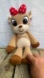 Color: Light brown with white tummy, brown hooves, red/white bow