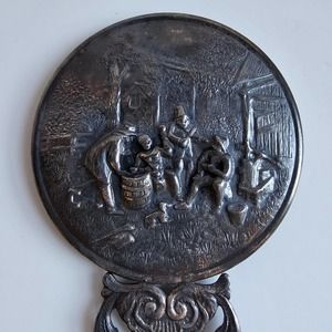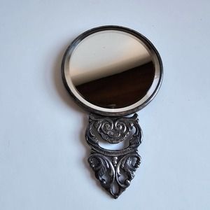 Hallmarked Denmark Hans Jensen Silver Plated Repousse Purse Hand Mirror Vintage