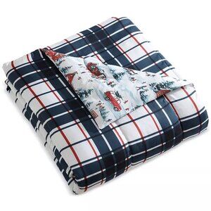 Easily reversible, choose from a classic plaid print or the town square scene, or mix and match with a combination of both.
