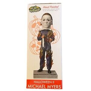 Michael Myers Halloween II Head Knockers is the silent stalker from the 1981 American slasher movie Halloween II. This addition to the popular Head Knocker line brings you a bobbling head Michael Myers on fire, cast in resin and then hand painted in incredible detail.