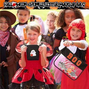 Halloween 2 Pcs spooky Cosmetic bag Snack Bag ,Clear Zipper Letter Travel