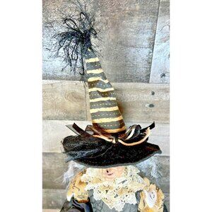 Halloween 27" Witch Doll Shelf Sitter Country Burlap Lace Ghost Pumpkin EUC