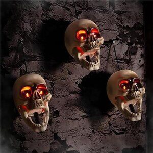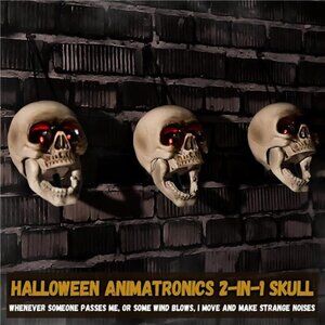 🧿ELAMAS Animated skull heads: Our scary and creepy skeleton heads is the ideal addition to your home decor. Display it in various evil and spooky ways to delight your guests at your next party. The menacing mouth it makes will create an unsettling atmosphere. Place these horror skull props on your indoor, outdoor, yard lawn, trees, door, wall for a delightfully dreadful display.