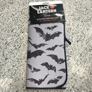 Halloween Black Bats Kitchen Dish Drying Mat Spooky Gothic Gray Party Decor Fall