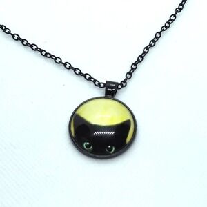 Halloween Black Cat Necklace Medallion Peeking Kitty Kitten Cat Lady Jewelry