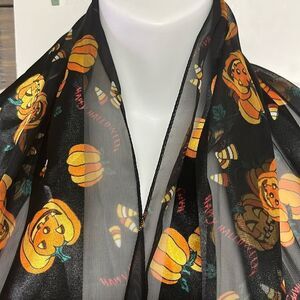 Halloween Black and Orange Pumpkins Jack O’ Lanterns, Candy Corn Polyester Scarf