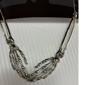 Halloween Bone Necklace Skeleton Hand Silver Metal 17" Chain Costume Accessory