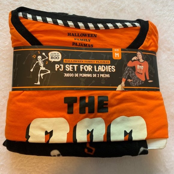 Women's Halloween Boo Crew 2-Piece Set Pajamas with glow in the dark "BOO". Size Medium (8-10).