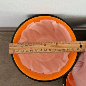 From Signature Housewares comes this ceramic 3 nesting set of halloween bowls with cute candy corn decorations on the outside and orange on the inside. Dishwasher and microwave safe they make the perfect party hosting dishes. You can also use them in your halloween decor display or with Rae Dunn. These have only ever been used for display. Has a good weight and feel them too!