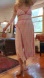 Dress middi length above the ankle.It's about a size 12.Has nice slits to show the leg.Kinda low cut really great fabric.I think it's a rayon cotton,maybe a touch of poly...no labels. lightweight and pretty.Please see the pictures and ask about any questions you might have.Elegant striped halter maxi dress featuring a flattering red and white design. Perfect for summer outings and casual gatherings, or use it to be a sexy hospital candy striper!!!brand new, i never wore it. no tags.