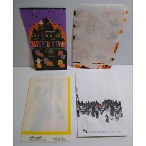 Nice set of (4) different new old stock vintage Halloween paper treat bags. Look to date from the 1960's-1980's. They are 6"-6.25" size. Unused condition with some wrinkles and light storage wear to edges. Additional goodie bag sets for sale in our store. Stock #28.