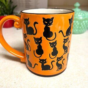 Cute large orange & black ceramic cat halloween mug!