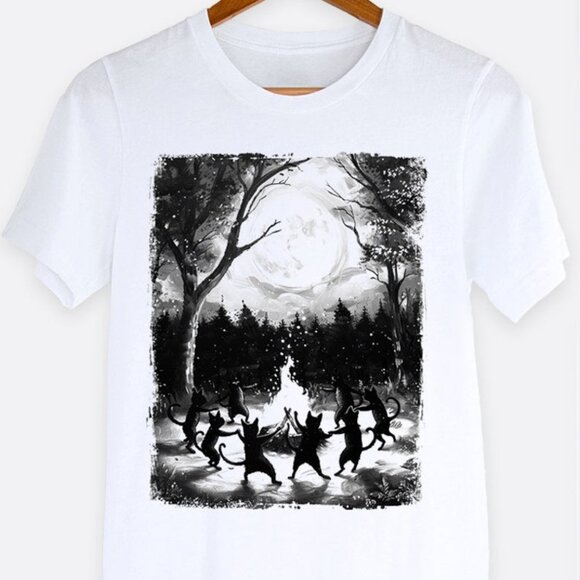 Halloween Cats Dancing Around Campfire Graphic Tee
