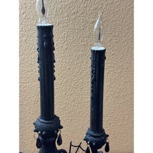 Black Gothic Candelabra Lamp With LED Flickering Candle Bulbs Hanging Crystal
