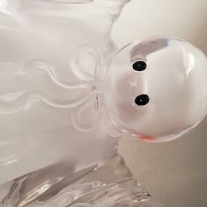 Charming clear glass ghost figurine with a whimsical design. Perfect for Halloween decor.