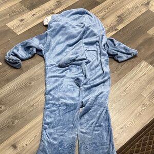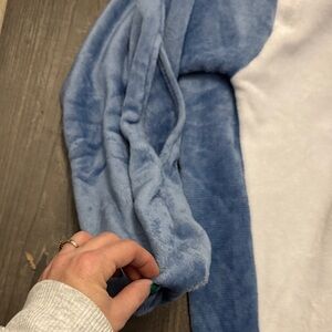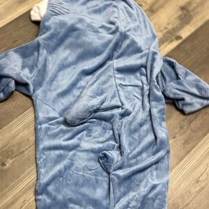 Warm and Cozy shark costume onesie in blue and white. Perfect for fun occasions.