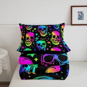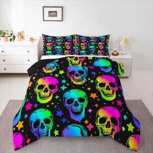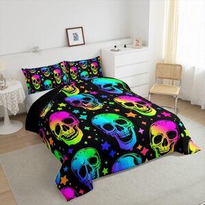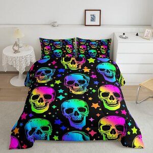 Halloween Comforter Skull Set Queen Sz