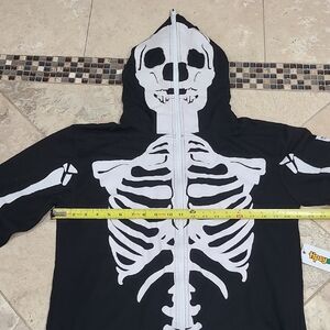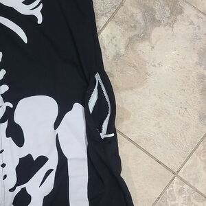 Stylish black jumpsuit with a striking white skeleton design. Ideal for Halloween and themed events.