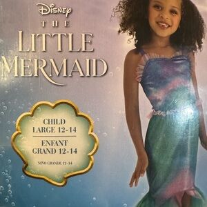 Enchanting Ariel costume with a vibrant mermaid design. Features a mix of blue, green, and pink colors.