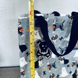 NWT sturdy canvas reusable tote bag for shopping or trick or treating. Cute dogs in costumes, spiderwebs and candy corn print pattern.