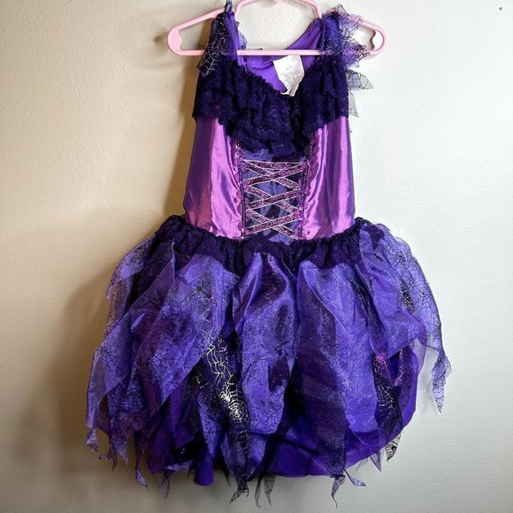 Halloween Costume Dress Up Witch Purple Black Size M (7-8) Girls