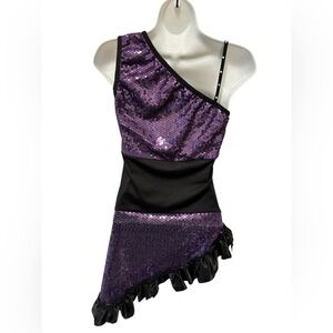 Halloween Costume Flapper Dress Latin Dancer Ruffles One Shoulder Sz M Ice Skate