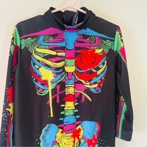 Halloween Costume Girls Colorful Skull Skeleton Bone Stretch Bodysuits 7-8