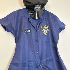 Halloween Costume Shirt Plaid Skirt Blue Red Police Officer Outfit Set Large