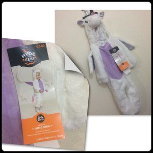 Halloween Costume Unicorn Baby Infant 0-6mo Jumpsuit Hooded Fuzzy One-Piece NWT.