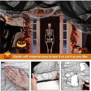 🧿【Suitable Size】:The size of our spooky cheesecloth is 30 X 72 inches when opened, enough for your Halloween decorating needs. The black creepy cloth is easy to hang and stretch, suitable for many halloween decorations indoor occasions.