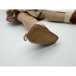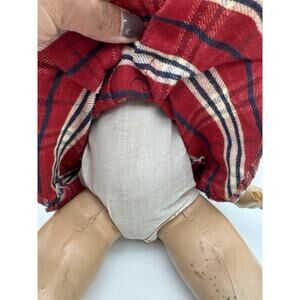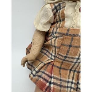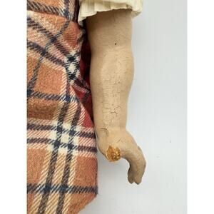 Step back in time with this vintage 1930s–1940s composition girl doll, measuring about 18 inches tall. She has blonde painted hair and striking blue sleepy flirty eyes that open and close, adding a hauntingly realistic charm. Her face and features capture the era’s craftsmanship, though age and wear give her a wonderfully eerie appearance—perfect for collectors or as a unique Halloween display. The doll shows typical wear for her age, including cracking, crazing, and scuffs to the composition material. Her eyes still function but may stick at times. Clothes and accessories, if present, are worn and may not be original. This piece is being sold as-is, showcasing decades of character and patina. Whether you’re a doll enthusiast, vintage collector, or looking for a creepy seasonal decoration, this antique doll is sure to stand out. Please review all photos closely, as they are part of the description.