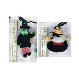 Halloween Crochet Knit Garlands (Lot of 2) Witches Bats Vampires Yarn Felt Approximately 7' Need TLC