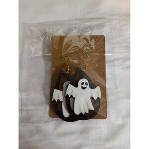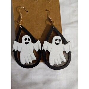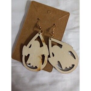 These wooden Halloween earrings are cute floating ghosts. They are a 3 inch drop and are 1.5 inches wide. They are new in package without tags. Please see pictures for more details.