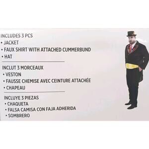 * Includes jacket, mock shirt with tie, attached cummerbund, and hat