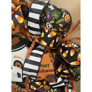 Large handmade Halloween Wreath. Made with deco mesh and assorted ribbon. Measures approximately 20x20x4