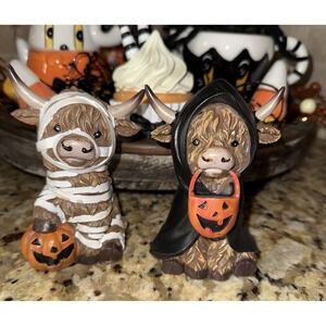 Halloween Decor - Highland Cows In Costumes Figurines 2pc Tabletop New