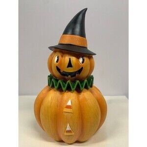 Halloween Decor NEW Ceramic Pumpkin Character Orange with Black Hat Decor