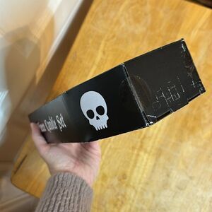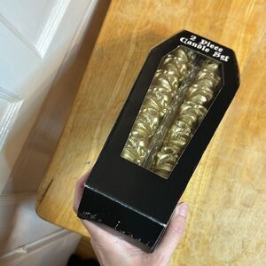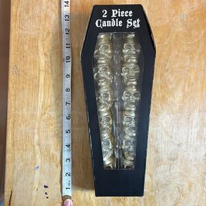 Halloween Decor Two Piece Light Gold Colored Stacked Skull Candlestick Set