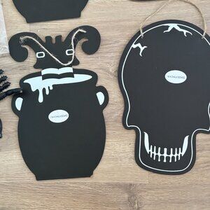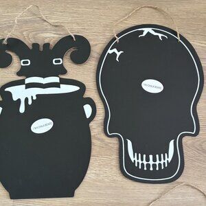 - Two (x2) cauldron shaped hanging chalkboards with witches feet
