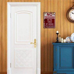 🧿Halloween Props:This No Trespassing Novelty Sign is perfect for any home or other institution in the United States.This is the best choice for"halloween signs" "creepy home decor" "halloween sign" "halloween signs decor"“No Trespassing”.