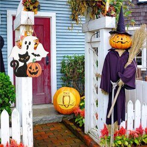 Halloween Decorations: Handcrafted from wood, our happy Halloween signs are lightweight yet sturdy enough to last a long time, making great party items for Halloween house decorating. It's also the ideal addition to fall party supplies and harvesting Thanksgiving.