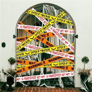HALLOWEEN DECORATIONS : Our Halloween caution tape is perfect for creating a spooky ambiance anywhere you want to decorate. You can use it to decorate doors, walls, windows, tables, trees, porch columns, gates, bushes, garden, yard, lawn, and more. The caution tape can make your house stand out on Halloween, making your party more impressive PREMIUM QUALITY MATERIAL : Our Halloween caution tape is crafted from high-quality polyethylene, making it durable, sturdy, and tear-resistant. Designed to withstand harsh weather conditions, it's the perfect choice for your Halloween decorations. 3PCS HALLOWEEN CAUTION TAPE BUNDLE : It features 3 different designs -WARNING - ENTER IF YOU DARE - HAUNTED KEEP OUT, you can create a spine-chilling atmosphere, added some more fun to holiday decorations. (Tips:the Halloween fright tape bundle is can not adhesive.) EASY TO USE : Our Halloween caution tape is 3inch x 90feet, making it simple to unfold and start decorating. There's plenty to cut and cover multiple doors and entrances. Wrap it around trees, gates, and more outside your house for a spooky touch. HALLOWEEN PARTY ESSENTIAL : Perfect for Halloween outdoor decorations, Halloween parties, vampire and fright night parties, haunted houses, and spooky themes. This Halloween tape is a must-have for a successful Halloween party.