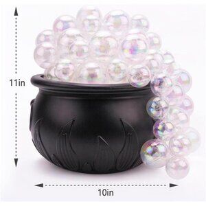 The cauldron is 10"H x 7"D, with the clear ornament balls coming in 3 different sizes.