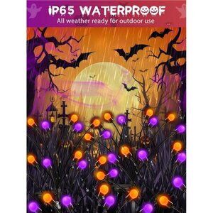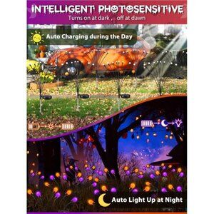 2025 Newest Designed Halloween Solar Lights: Our spooky solar firefly lights (Orange and Purple) are perfect for creating a chilling Halloween atmosphere. Enhanced performance with upgraded high-capacity battery and larger solar panel for extended runtime. With their eerie colors and haunting, flickermaking them the must-have décor for your Halloween celebrations.