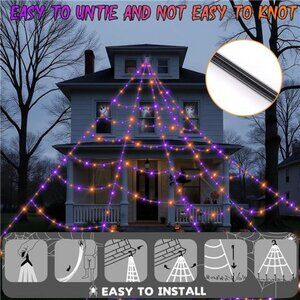 【11 Lighting Modes & 3 Timer Options】: These giant Halloween spider web lights include a remote control that lets you easily switch between 11 fun and spooky lighting modes, such as Auto Cycle, Orange Steady, Purple Steady, Flash, Fade, Mix, Wave, and more. You can also choose from 3 timer settings - 6H on/18H off, 8H on/16H off, or 6H on/6H off/3H on/9H off. All settings are easy to use and help save energy while keeping the lights on schedule.