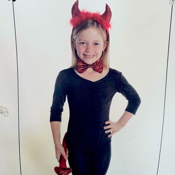 NWT 3-pc Halloween kids unisex red sequin embellished devil costume accessory kit. Ages 3+.