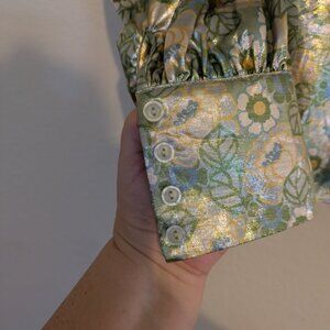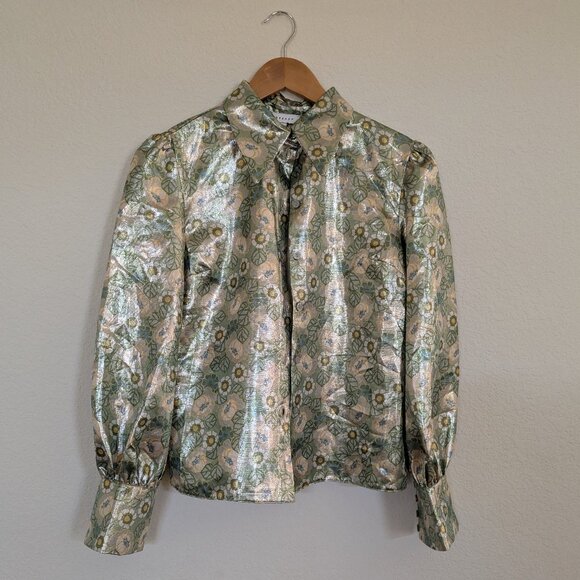 Topshop xs Vibrant Metalshine Blouse w/Puff Sleeves and 70's Collar in Mint