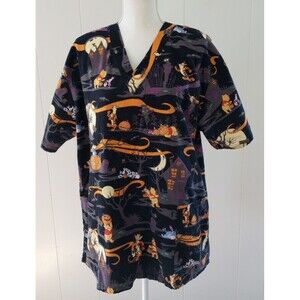 Halloween Disney Winnie The Pooh Tigger Eeyore Black Scrub Top Adult Large Spooky