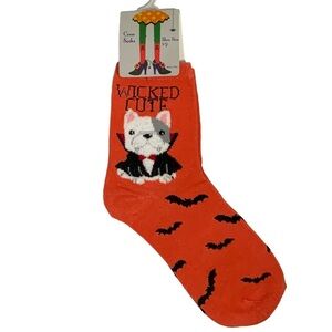 Halloween Women’s Socks Wicked Cute Dog with Bat Print Orange Black Shoe Size 9-11